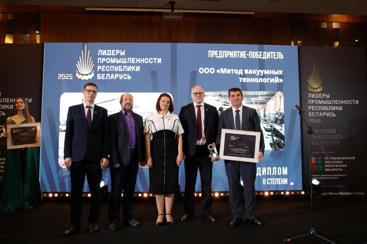 Мы рады поделиться значимым достижением: компания ООО «Метод вакуумных технологий» стала лауреатом национального конкурса «Лидеры промышленности Республики Беларусь 2025», получив Диплом II степени!